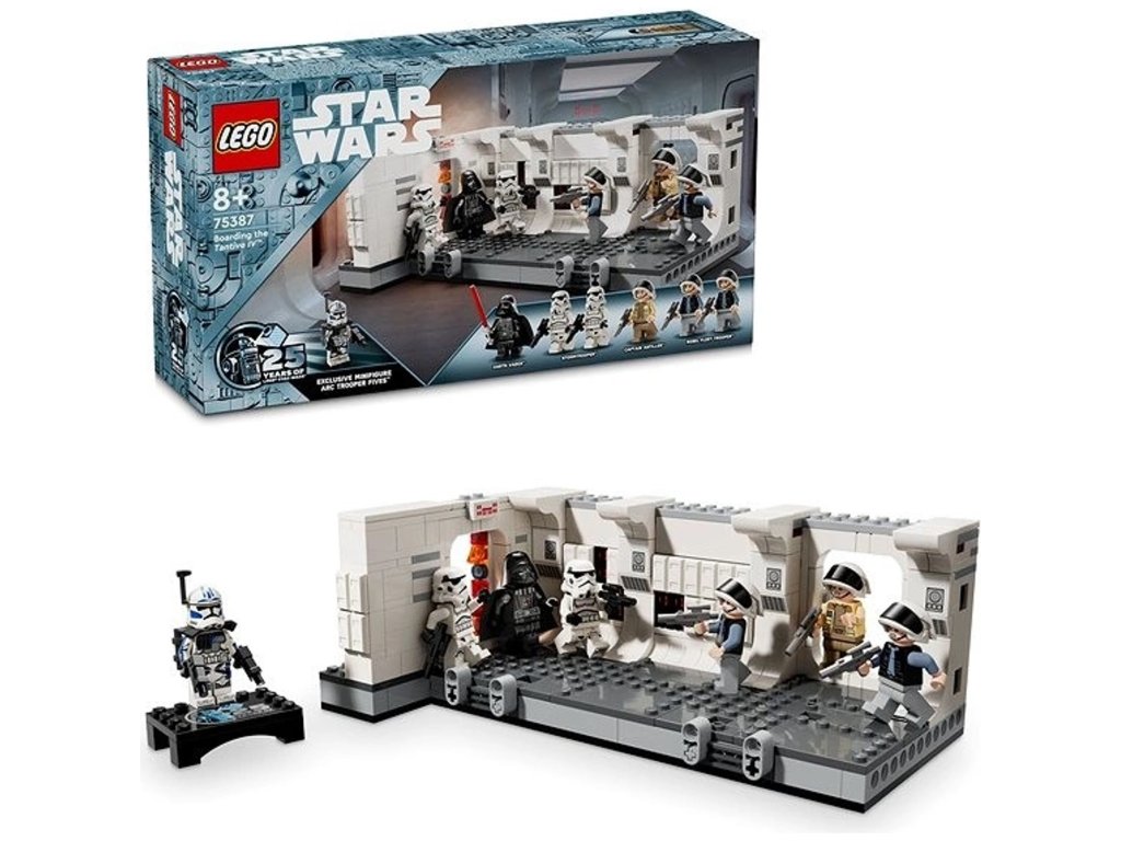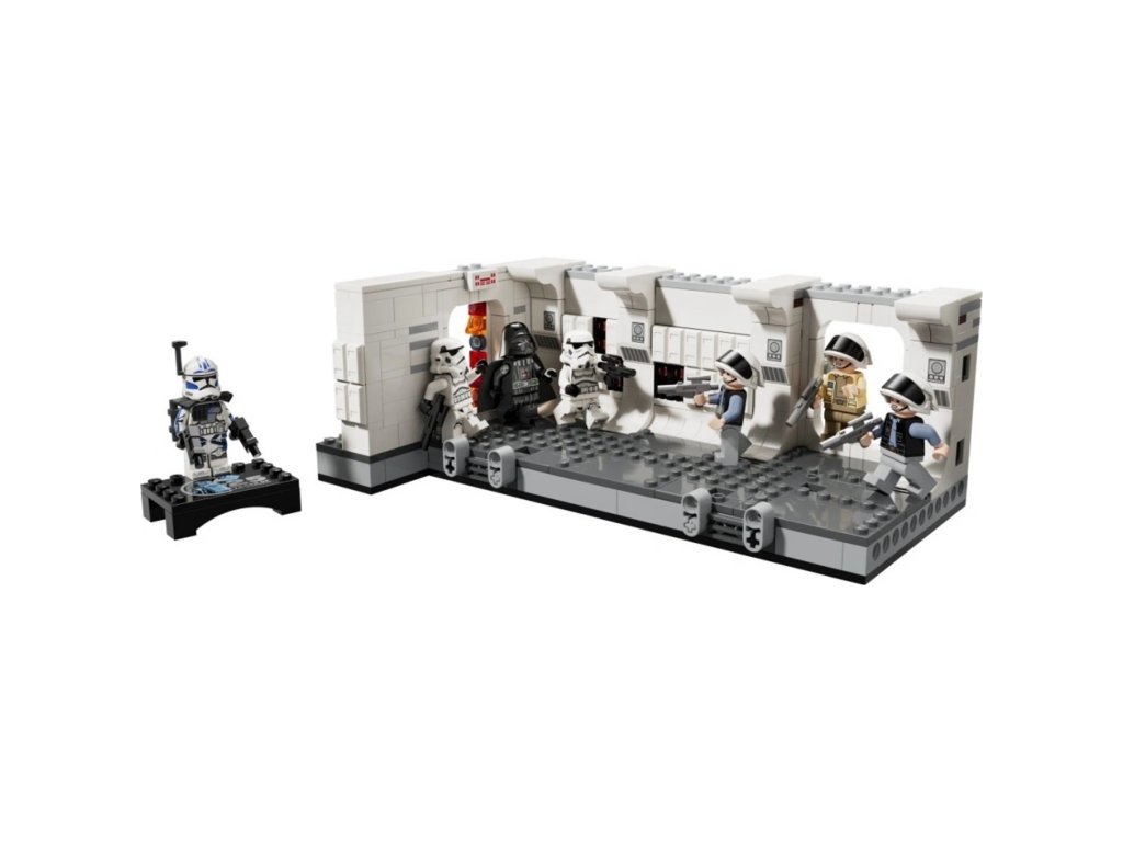 Stavebnice přehrává úvodní nástup na palubu Tantive IV z filmu Nová naděje. Součástí jsou ikonické minifigurky a akční prvky, které umožní znovu vytvořit ten napínavý okamžik a doplnit sbírku každého fanouška.